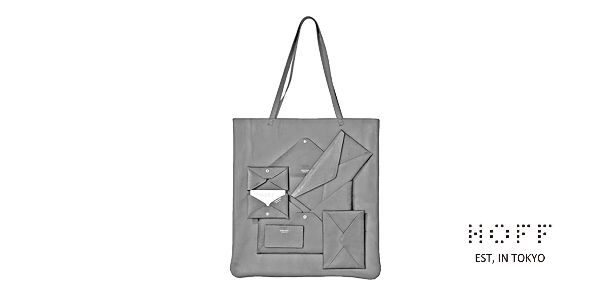 〈 HOFF / ホフ 〉の特徴は何と言っても、レザーの“使い方”と独自の“形”の掛け合わせ。通常、靴やカバンを製作する際に、革の厚みを揃えるために「漉く=carding」作業を行うが、残された漉革は、有効活用されることが少なく、廃棄されることもある。HOFFはこの漉革に着目し表面がない漉革ならではの味を活かす事に成功。